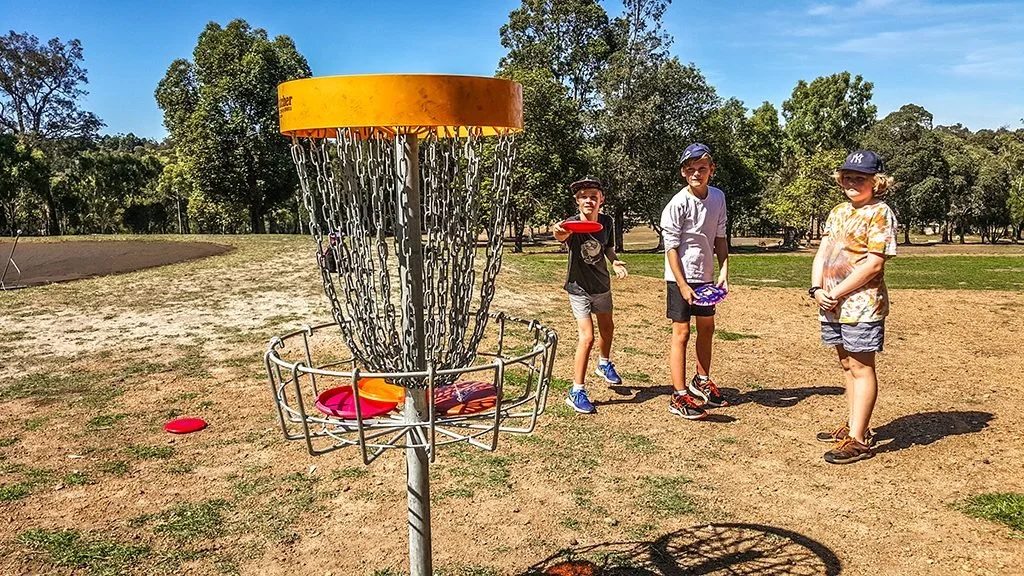 Taking a break: Just like going on a magical journey, playing disc golf lets kids escape into a world of focus and strategy, where they can forget about their worries and enjoy the moment.